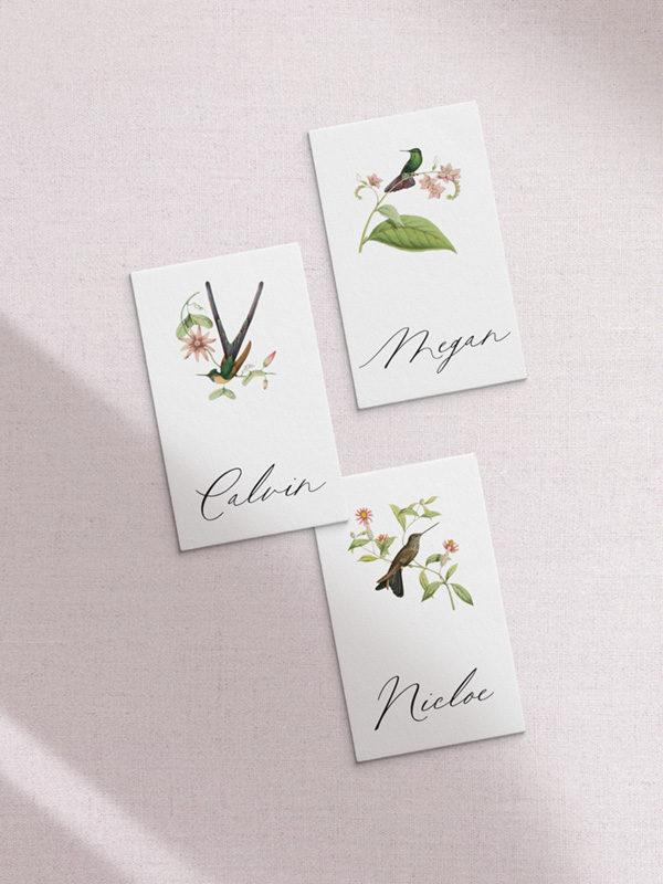 空氣中瀰漫著春天香甜明亮的氣息。幸福,就從這裡展開。Spring Nymphs是一個富有極簡表現力與藝術感的系列,為了喜愛帶有現代浪漫風格的夫婦所設計,花卉與蜂鳥插圖帶出清新氛圍與簡約的文字排版是最完美的結合。